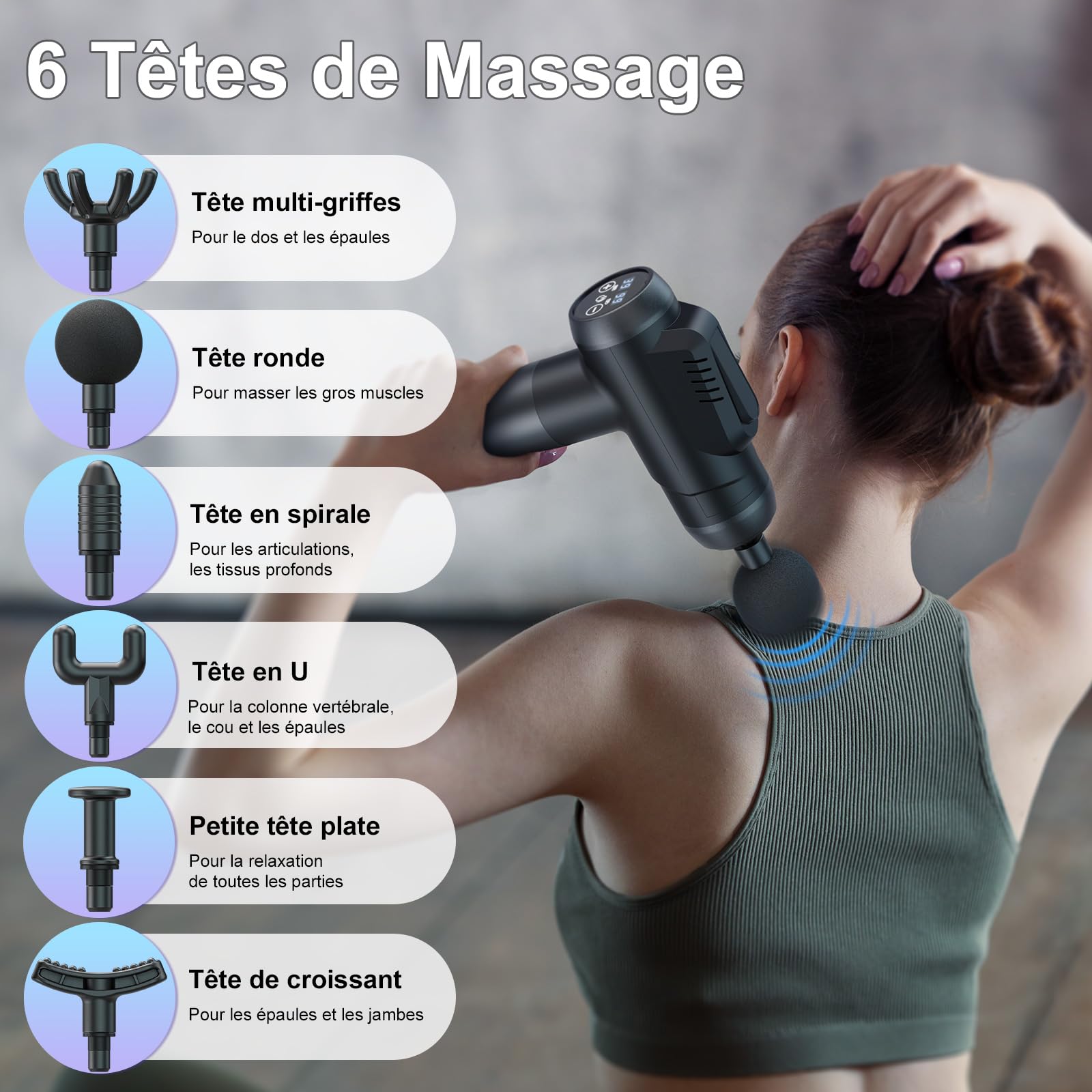 Offrez à votre corps le soin qu'il mérite. Grâce à notre pistolet de massage électrique, dites adieu aux tensions musculaires et à la fatigue. Dotée de plusieurs vitesses et têtes interchangeables , la cible avec précision chaque zone douloureuse.